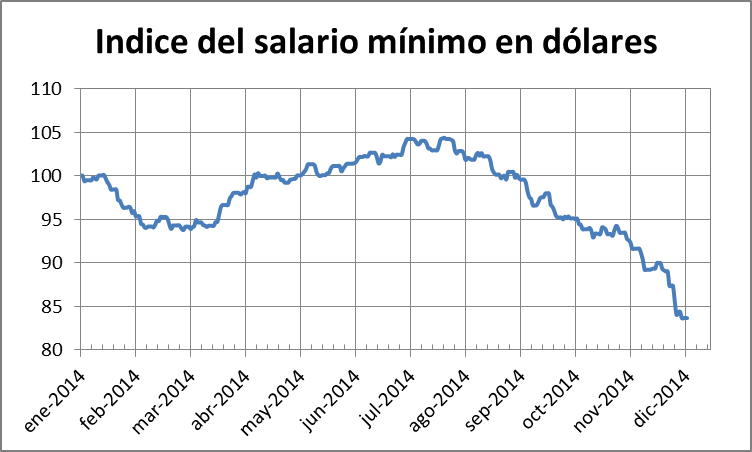 comportamiento del salario mínimo medido en dólares, como se ve en este año ha